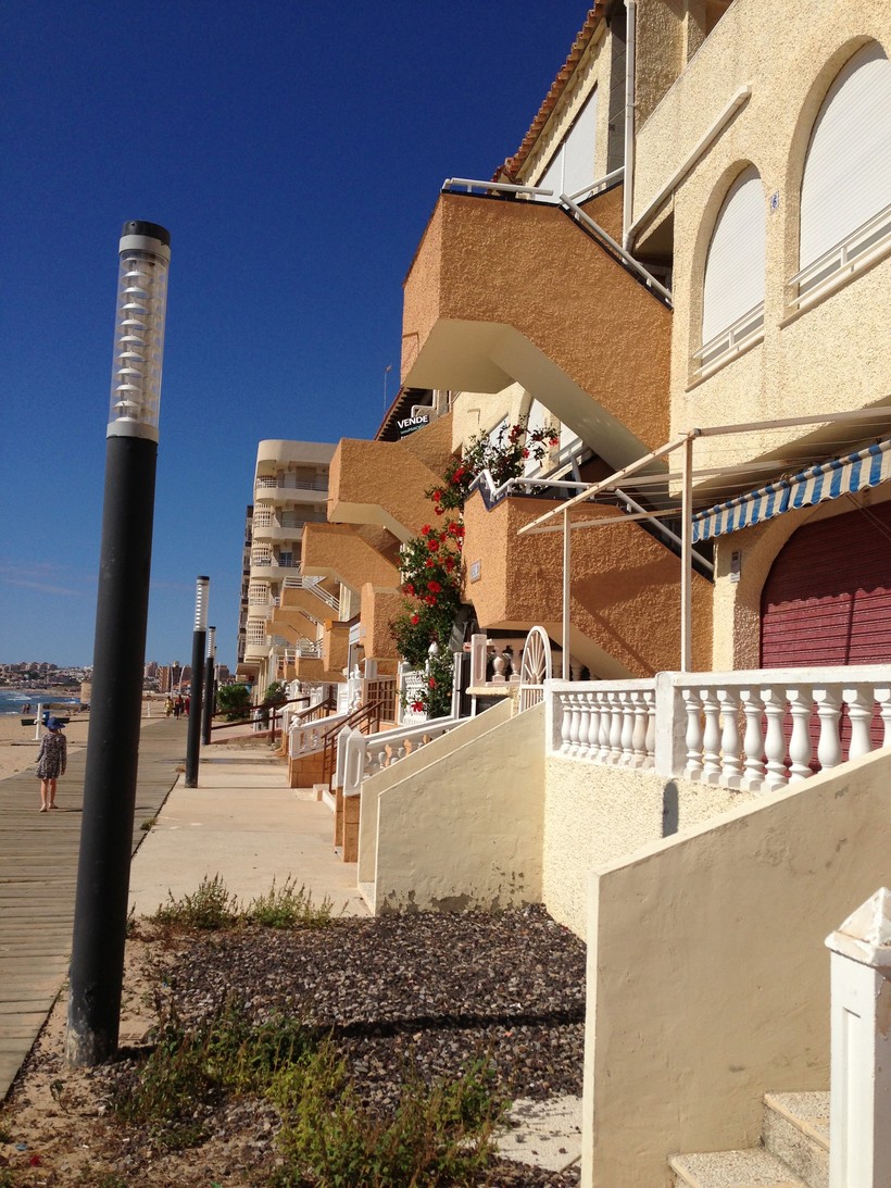 Так случилось, что в Торревьехе я отдыхала дважды, оба раза в самом начале июня. Мои друзья имеют поблизости домик, в так называемой "урбанизации", то есть в небольшом новом поселке, состоящим из одинаковых домов, совсем недалеко от замечательного песчаного пляжа. Но в поселке нет ни магазинов, ни ресторанов, одним словом, никакой инфраструктуры. Ближайший город Торревьеха, в 10 минутах езды на автомобиле. Жилье здесь покупают преимущественно англичане и русские. Английские пенсионеры переезжают в район Торревьехи, называя это downshifting. На свои английские пенсии они могут безбедно существовать в более дешевой Испании в хорошем климате шесть месяцев в году. Они даже имеют тут свои магазины и рестораны с привычными английскими продуктами и блюдами.