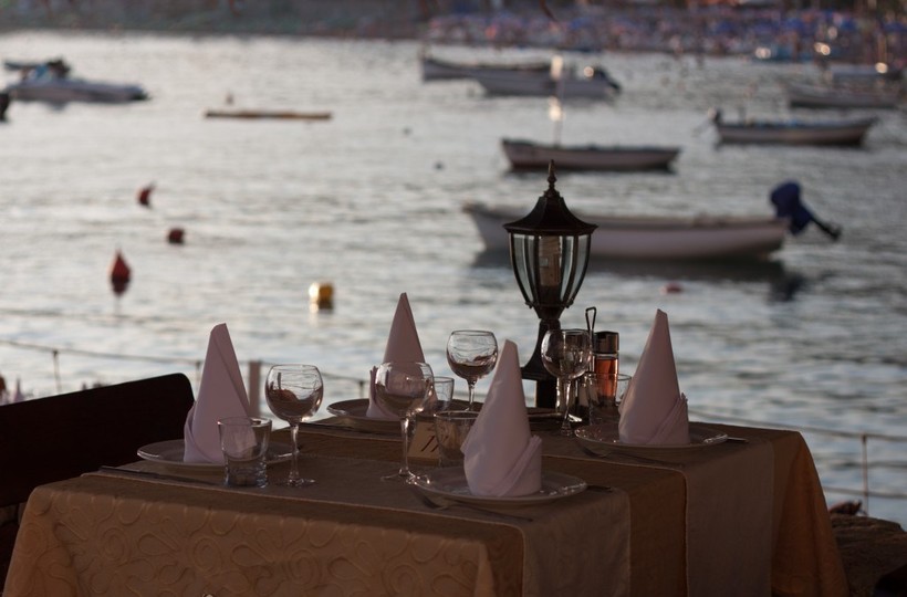 - Если хотите романтический ужин – выбирайте деревянное кафе у самой скалы (мыс, отделяющий Рафаиловичи от других регионов). Там очень мило, есть столики прям над водой (бронируйте днем), вкусно и играют на саксофоне.