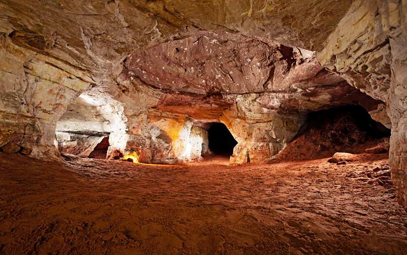 Проехав на маршрутке, мы высадились у Спортлага и довольно быстро пошли. У пещер уже стояли такие же индивидуалисты, как мы, так что особо долго ждать, пока сформируется группа, нам не пришлось. Признаюсь, меня немного лихорадило, когда мы шли внутрь. Либо сказывалось -8 летом, либо, все-таки осознание, что я в пещере. Хоть они и руковтворные, до середины прошлого века там добывали кварцевый песок, но это все таки не привычное для меня место. Но скоро я заметила одну странность-обычно в таком состоянии у меня пожет повыситься давление и начинает болеть голова, а тут она чувствовала себя прекрасно. Сказывался воздух. Мне сказали, что в этих пещерах состояния воздуха прекрасное, так как там не могут выжить вредные бактерии.