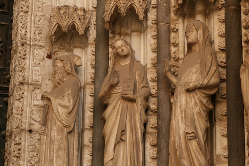 Для начала выбрали мы собор (Кафедральный собор Святой Марии). В соборе были распахнуты двери и, кроме нас, никого не оказалось; горело несколько свечей в ящиках с песком, смотрели на посетителей грустные и нейтральные лица статуй, а еще в углу обнаружилась тетенька, берущая небольшую мзду за подъем на башню. А почему бы и нет, подумали мы, дали тетеньке звонкую монетку и по прохладной лестнице поднялись наверх.