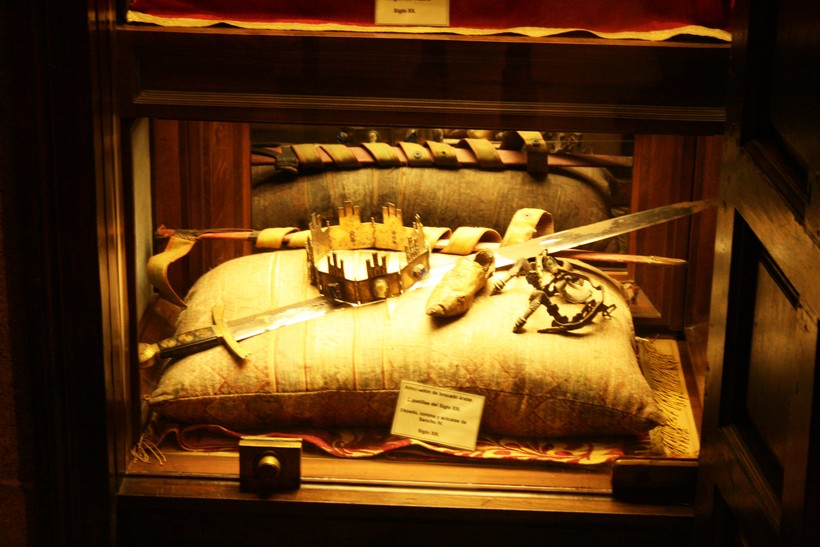 Оказалось, сохранилось от этого народа не так чтобы много. Пришедшие арабы тщательно пограбили Толедо и окрестности, а смывшиеся из города вестготы захватчикам постарались оставить как можно меньше. Тем не менее, здесь есть остатки одежд, украшения, монеты, оружие и даже парочка корон, которые, по преданию, украшали головы вестготских королей. Может, одна такая красовалась и на голове падкого на женщин Родриго. Ах, Родриго...