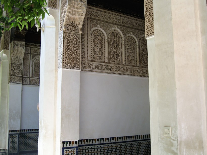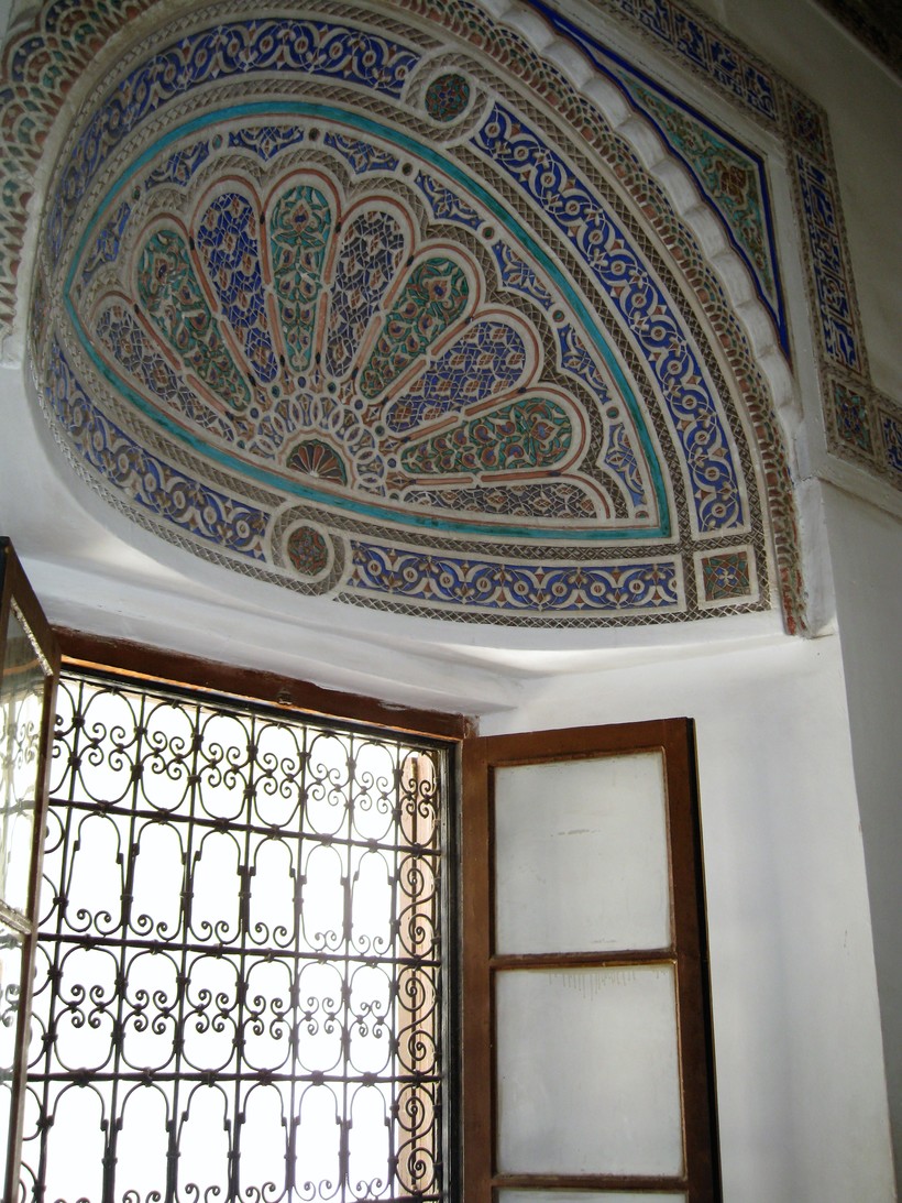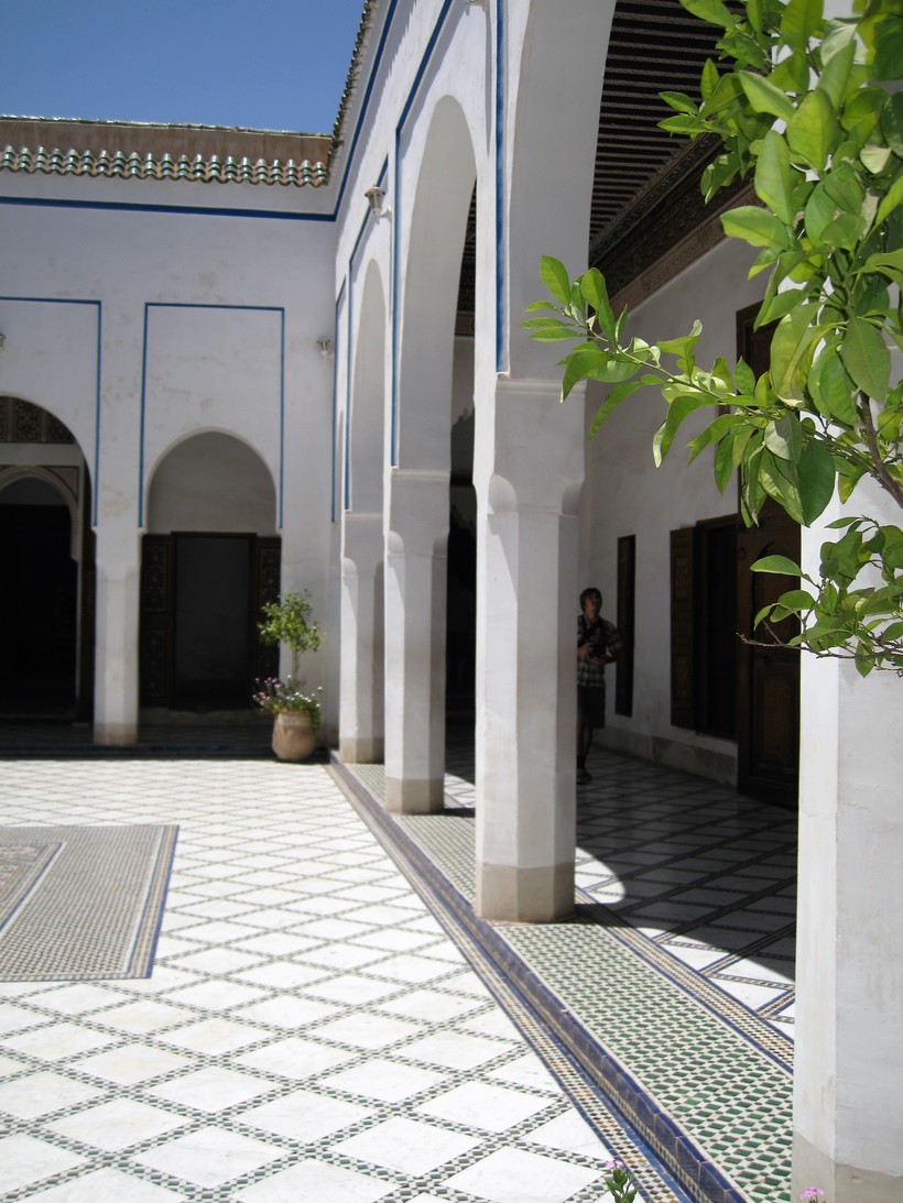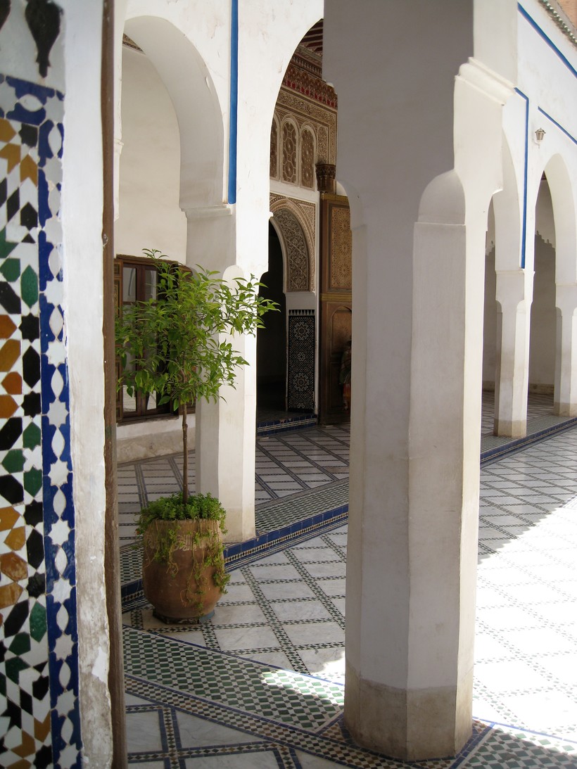 Да, нам действительно рассказывали, что в Марокко не принято выставлять свое богатство напоказ. И мы в этом убедились сами. Красивейший дворец с внутренним двориком, резными мраморными колоннами, мозаикой на стенах и потолке, кружевными решетками на окнах. Все очень красиво. И хотя это уже не жилой дворец, а лишь музей и для полной картинки не хватает предметов интерьера и жителей, но при великолепном рассказе гида и воображения все это оживает и переносит тебя на век назад.