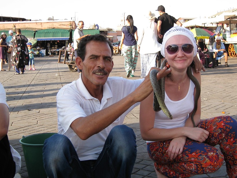 • Обязательно выделите время на посещение сердца Марракеша – центральной площади – здесь почти всегда звучит экзотичная музыка, благодаря местным умелицам можно сделать витиеватый рисунок хной, увидеть вживую заклинателей змей, которые укрощают ядовитых подруг с помощью мелодии..а вечером праздник жизни продолжается – теперь это место гуляния и ресторан под открытым небом, опять же с музыкой, марроканскими напевами и разными вкусностями