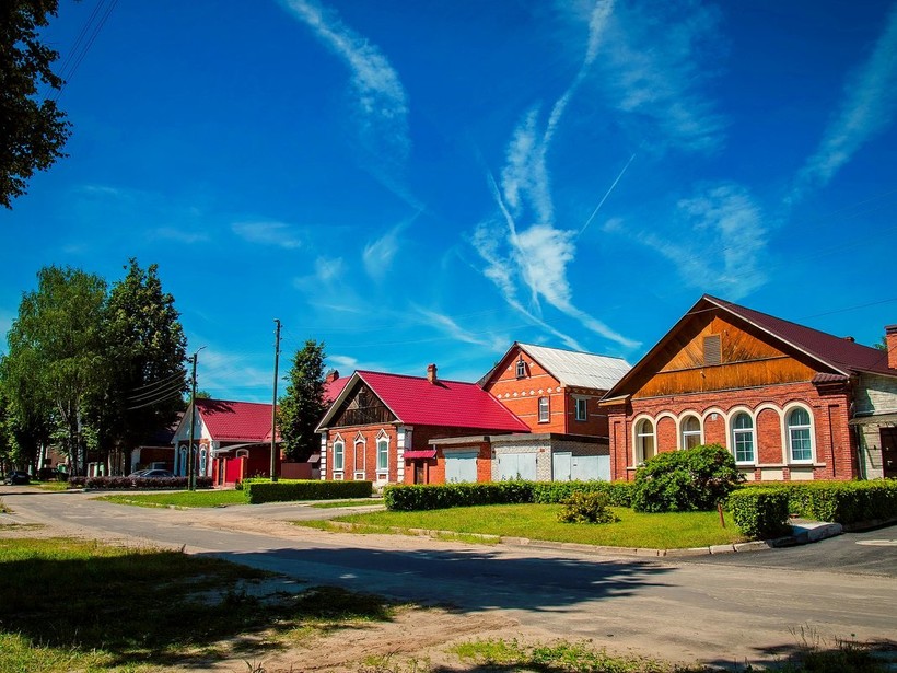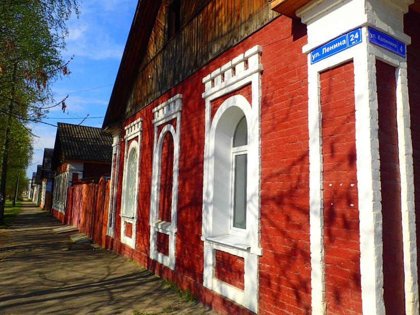 Архитектура города очень своеобразная. Большое впечатление на меня произвели многочисленные небольшие дома, сложенные из красного кирпича. Они очень атмосферные. На вид понятно, что они явно не новые и обладают некой историей. Я даже остановила прохожего спросить про эти строения, как оказалось, эти домики называются мальцовскими, возможно, от фамилии архитектора или владельца стекольного завода, этот вопрос для меня так и остался невыясненным, но горожане очень гордятся ими и считают эти дома отличительной особенностью города Гусь-Хрустальный.