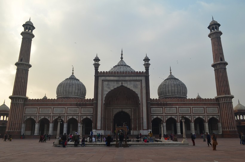 Далее едем в крупнейшую мечеть на территории Индии - Джами Масджит. В ее дворе одновременно помещается до 20 тысяч человек, а среди всех исторических мест - именно она самая посещаемая. Внутри фотографировать запрещено.