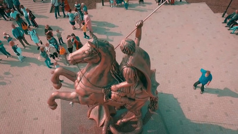 Недалеко от вокзала есть площадь Победы, где относительно недавно, в 2017 году, были проведены ремонтные работы и установлен памятник Георгию Победоносцу. Событие для города было очень знаменательное, на само открытие я не попала, но была в городе сразу после него, и интересен жителей к воссозданному месту тогда еще не угас – на площади было непривычно многолюдно, кто-то даже фотографировался с новыми объектами.