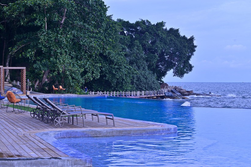 Индэпенденс. Отель в Сиануквиле. Камбоджа. Отель отличный для отдыха. Свой пляж. Есть сауна, спорт зал. Большая ухоженная территория. За территорией есть место, где кормят обезьян. До города можно добраться только на байке или автомобиле, хотя есть тук туки. Да еще ходит по расписанию бесплатный автобус. Отличный бассейн с видом на море.