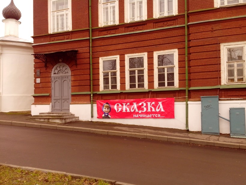 Мне нравится гулять по этому губернскому городу. Центр Костромы – большая площадь со старыми торговыми рядами, храмом и пожарной каланчой постройки первой половины девятнадцатого века. Выглядит всё достаточно интересно, создаёт особенную атмосферу. Так и представляешь, как тут сто лет назад гуляли барышни с кавалерами, торговали лавочники, ловили извозчика купцы…
