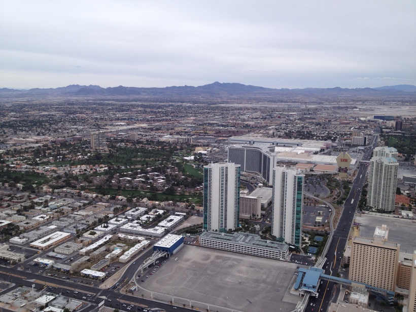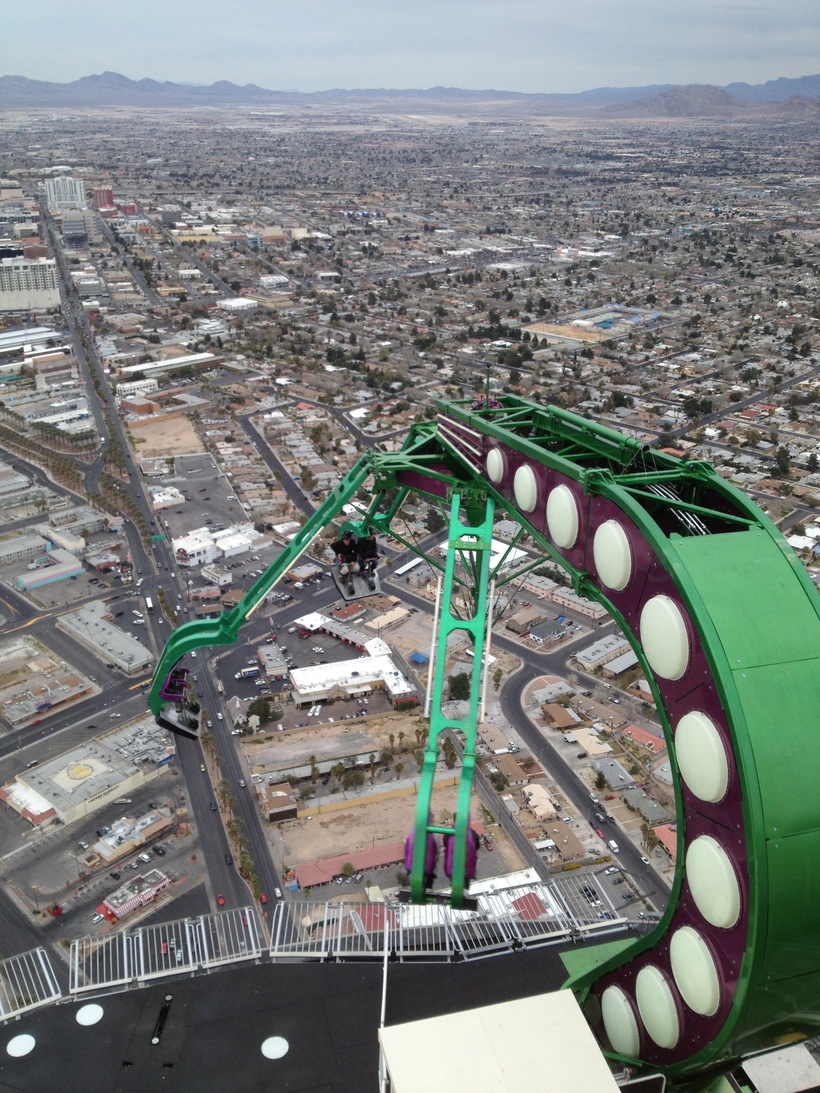 Во-первых, чуть в стороне от общей вакханалии на крыше отеля "Стратосфера" находится парк развлечений. Да-да, самый настоящий парк с аттракционами на крыше. Их там, правда, всего штук пять. Но и этого, поверьте, хватит. Все эти горки и крутилки находятся на высоте 300 метров и в то время как вас катают на карусели, вам кажется, что дело происходит над пропастью. Адреналин непередаваемый! Да и вид на город оттуда неплохой