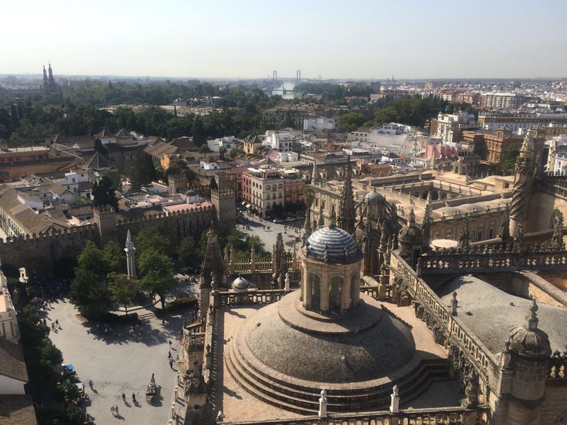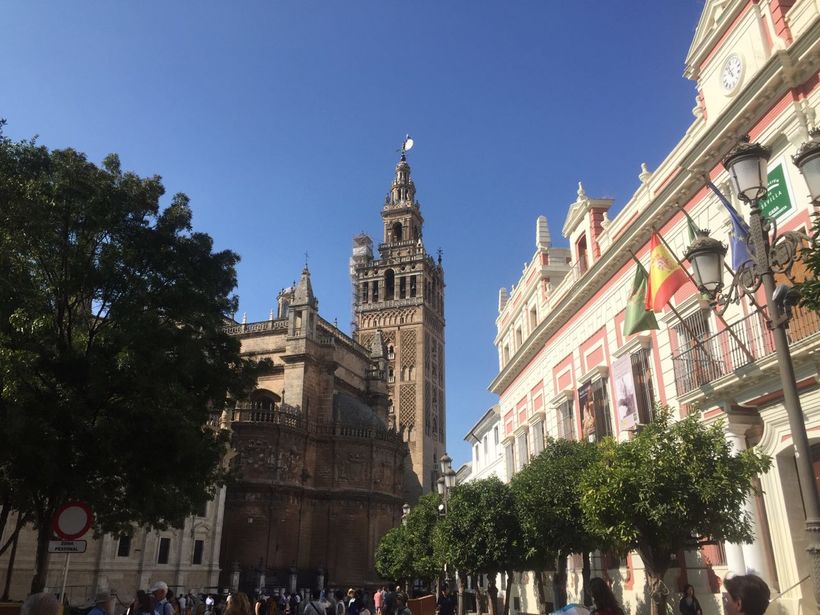 Первым делом в Севильи все отправляются в королевский дворец Алькасар и кафедральный собор Севильи. Они расположены по соседству. Чтобы не стоять в длиннющих очередях на вход в собор и во дворец Алкасар билеты лучше покупать заранее, на их сайтах.