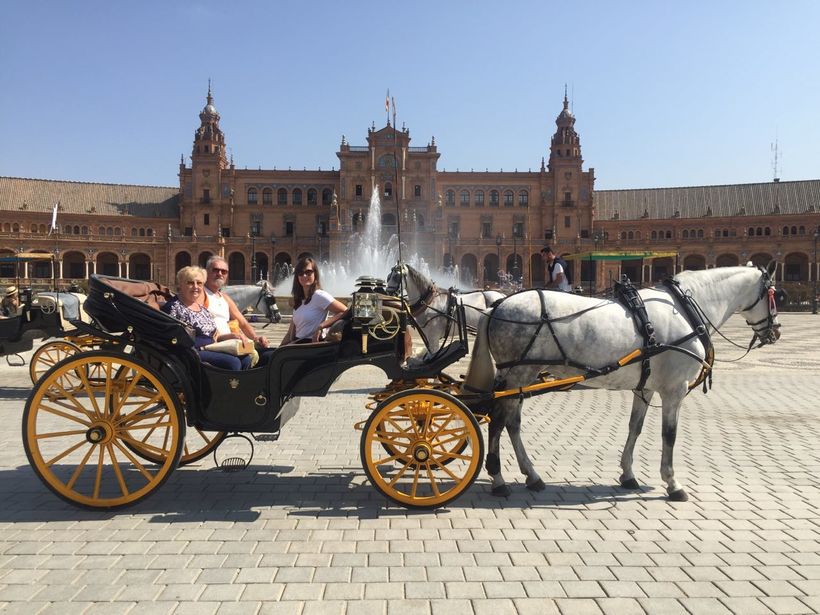 Прямо рядом с собором дежурит много карет, в которых предлагают покататься туристам. Маршрут круговой за 20 минут и 20 евро провозят по всем основным достопримечательностям, включая площадь Испании. Но мы договорились с кучером и нас высадили на обратном пути не здесь же на площади перед собором, а в другом месте.