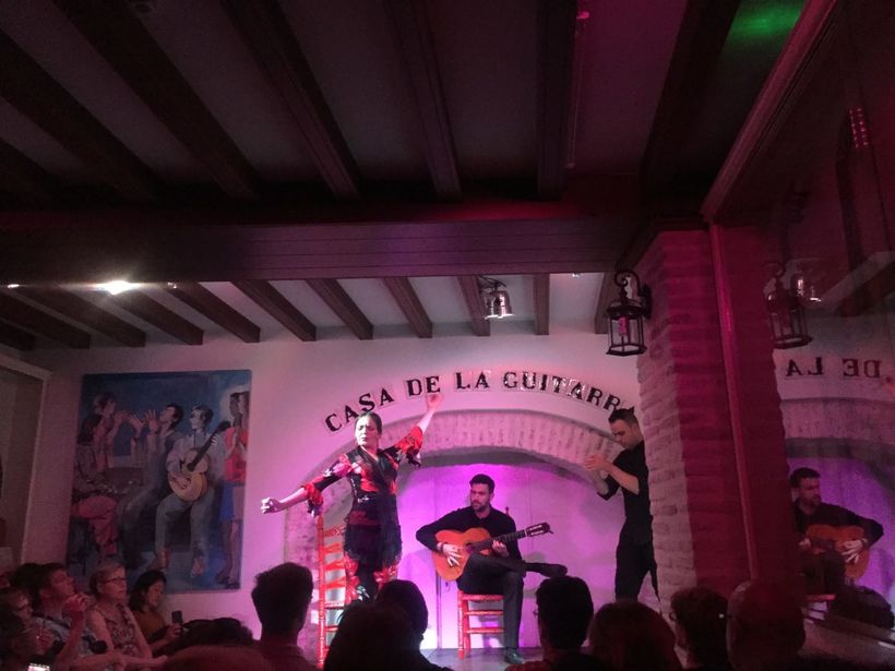 В заключении вечера мы сходили на потрясающее шоу фламенко в музей Дом гитары. Он расположен прямо в центре города, в лабиринте узких извилистых улочек. Билеты мы купили в тот же день, но в первой половине дня, прямо перед шоу, думаю, их скорее не будет. Помещение в Доме Гитары совсем небольшое, сидишь там как-то в тесноте, но как только начинается шоу, забываешь про всею