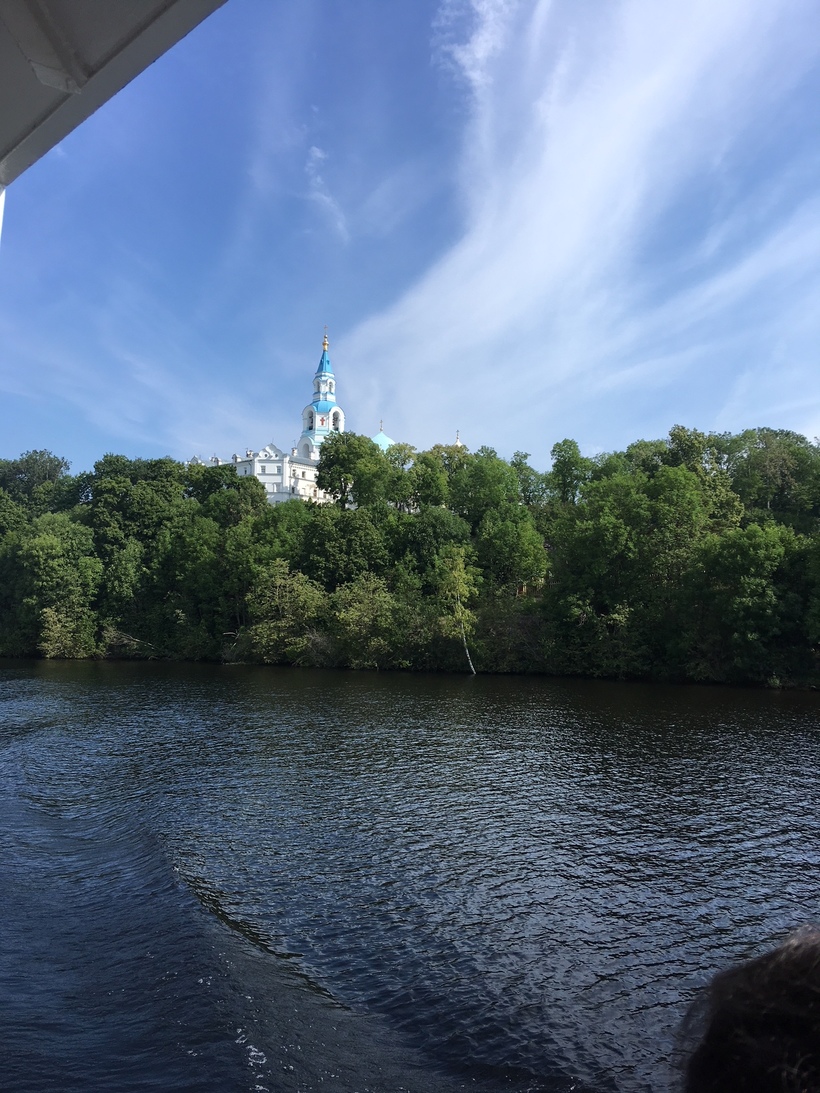 Пересев с теплохода на прогулочный корабль группа отправилась в Спасо-Преображенский монастырь. По пути любуясь красотами. Неожиданно, на пути к Монастырской бухте из воды показалась темная головка, затем тело и наконец, удивленный взгляд ладожской кольчатой нерпы! Господи, какое же это было волшебное мгновенье. Сколько радостного всплеска от встречи с эндемиком в дикой природе. Вот так, запросто. Сколько потом я не вглядывалась в озеро, такого чуда больше не видела.