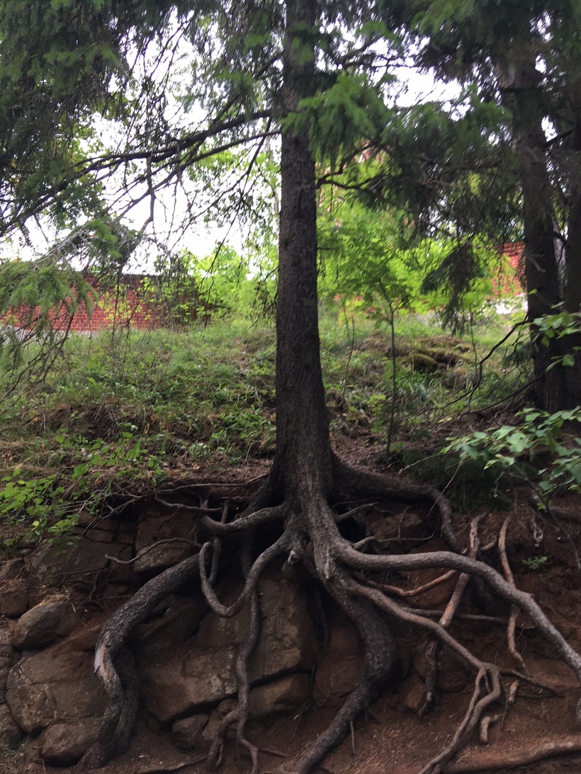 От сада по гранитной лестнице XIX века я поднялся на гору Фавор, окинул взглядом сад и бухту еще раз и направился в парк. Он был создан 200 лет назад. Растут липы и дубы, что необычно для Карелии.