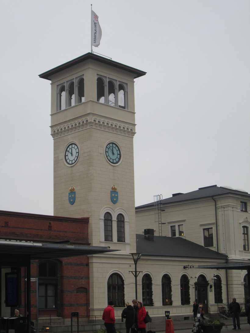 Первый интересный объект, который нам встретился в Мальме – красного кирпича здание станции с белой башней с часами. Это как обещание, что в городе есть посмотреть и скучать нам не придется.