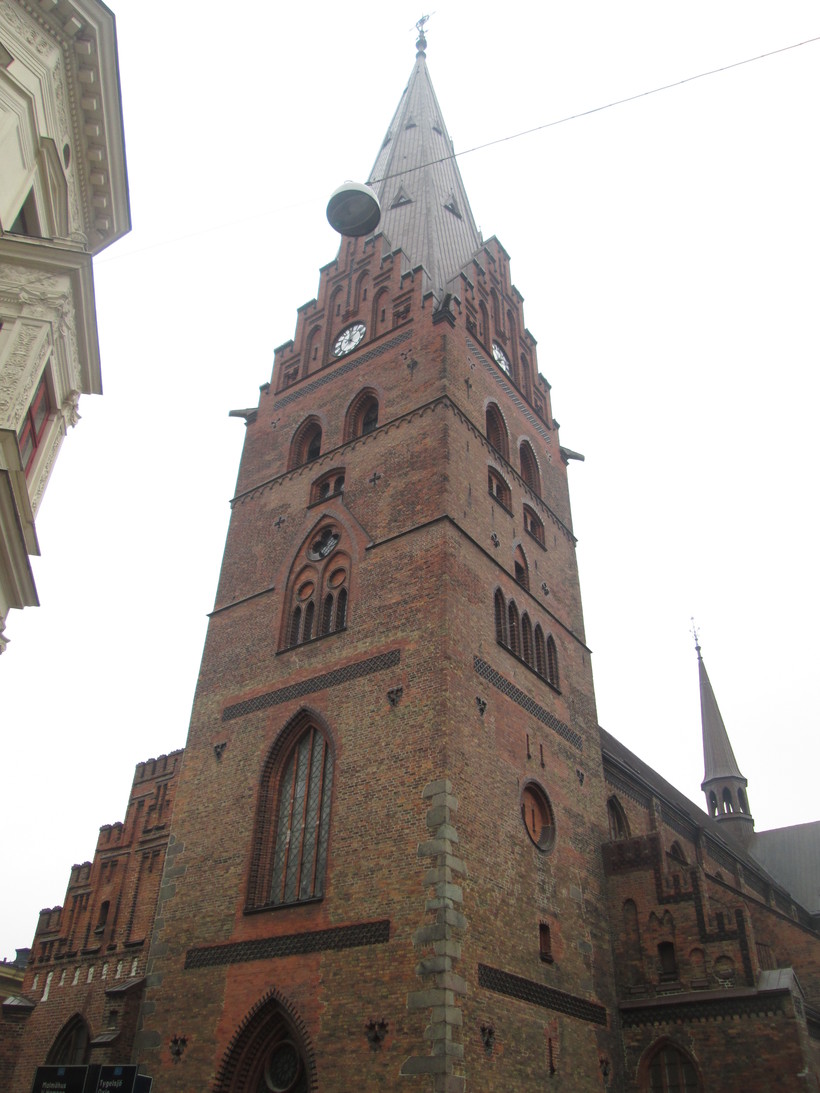 Выйдя из здания вокзала, перешли через речушку по мостику – и вот мы уже шагаем по историческим улочкам города. От здания вокзала нужно держать путь на шпиль главного храма города – церковь Святого Петра – самое старое здание в городе, построенное в готическом стиле в 1310 г. Вначале может показаться, что город будто бы недавно отстроен, так как все здания в отличном состоянии и выстроены в общем стиле. Однако все постройки исторические, возводились в разное время, но, несмотря на разновозрастность, сосуществуют в единой архитектурной гармонии.