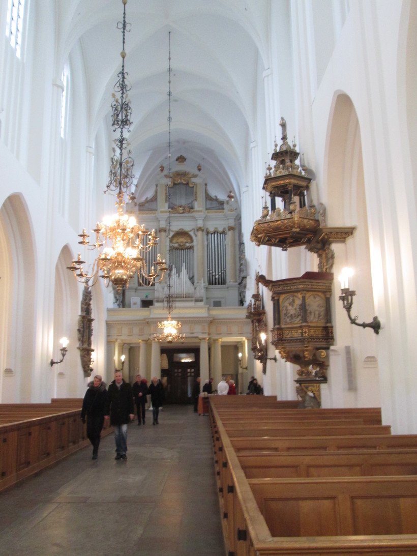В храм можно беспрепятственно и бесплатно зайти, разрешено даже фотографировать. Интерьер характерен для католических соборов, интересной деталью является пол, выложенный могильными плитами 16-17 веков.