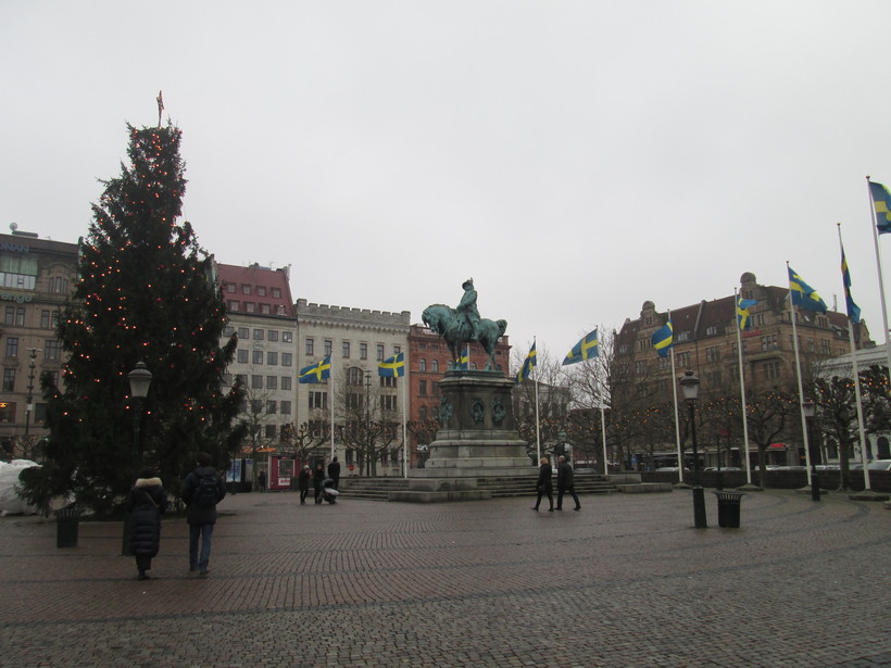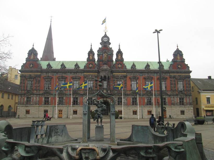 От церкви Святого Петра продолжаем прогулку по Ратушной площади (Стуртурьет), на которой находится статуя Карлу 10. Здание Ратуши выполнено в стиле голландский ренессанс (16 век), недалеко – дом мэра. В подвалах зданий сегодня функционируют рестораны, но так как наш визит пришелся на 1 января, рестораны были закрыты. Самое главное здание площади - Ратуша, конечно.