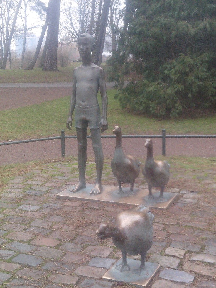 Попадаем на территорию другого парка, скорее лесопарка. По абсолютно чистым дорожкам мимо пруда с лебедями на полянке - памятник Нильсу и диким гусям. Кто же не знает героя этой знаменитой детской сказки! Судя по карте, один парк - Королевский, которому более 100 лет, соединяется здесь со Слоттенпаркеном.