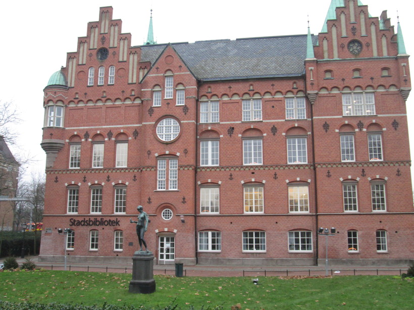 А нам 1-го января в период отпуском и выходных всех почти заведений понравилось просто гулять по чистым тротуарам и мостовым и любоваться старинными чудесными зданиями Мальме, похожими на сказочные замки. Например, вот в таком находится местная библиотека.