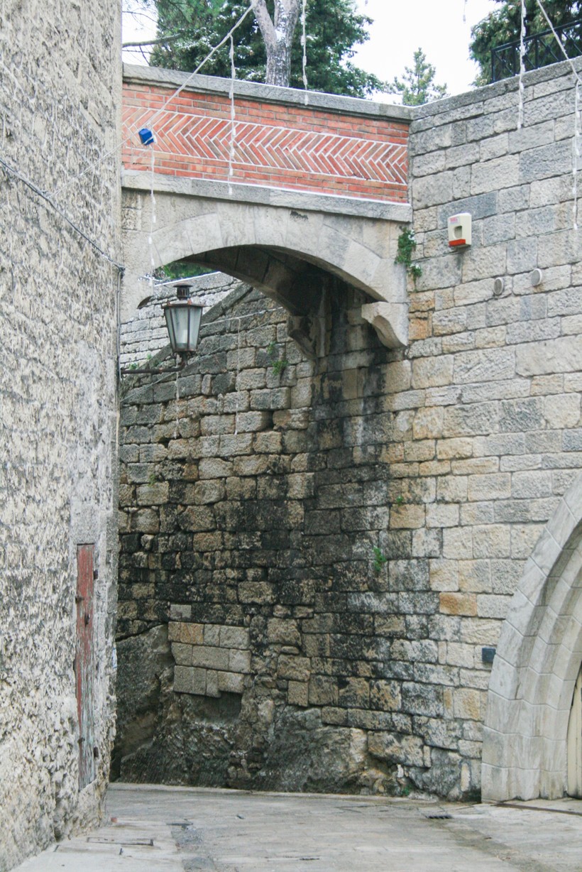 Сан-Марино расположен на холме... ах да, я об этом уже говорила. Это причина, а следствие таково, что тут улицы больше похожи на лестницы. Иногда они и являются лестницами, лихо заруливают под средневековые арки и теряются вдали. Из небытия возникают башенки и исчезают, скрытые туманом. На площади у церкви стоит каменный мужчина и сосредоточенно держит крест. Дети носятся туда-сюда по узким переулкам и оглашают их восторженными криками. Жизнь кипит.