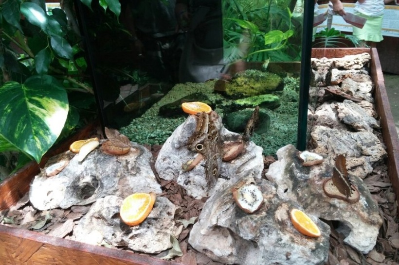 - работники оранжереи организовывают почти каждый день выставку, посвященную жизненному циклу этих насекомых (очень интересно наблюдать за процессом превращения куколки в прекрасную бабочку);