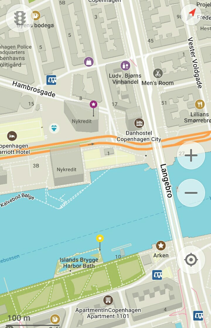 Расположена недалеко от парка Tivoli. На нее я также забрела совершенно случайно по дороге от Tivoli к району Christiania. Привлекло большое количество местных на берегу и ряд современных зданий. Была прекрасная погода, и мы устроили на одном из пирсов небольшой пикник с превосходным видом на другой берег.