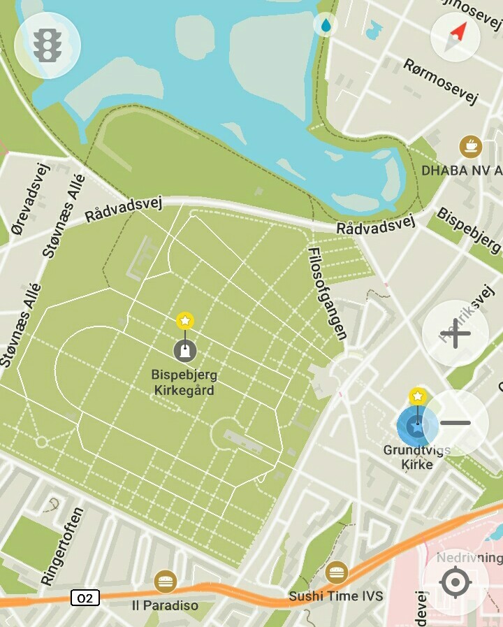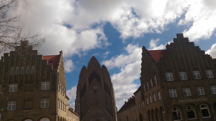 - парк с цветущей сакурой на территории кладбища Bispebjerg Kirkegård и величественное здание лютеранской церкви Grundtrigs Kirke недалеко от него, в районе Биспебьерг:Места захоронения в Дании, как и во всей Европе, разительно отличаются от российских, по тому сначала можно подумать, что гуляешь по парку. Дойдя до конца кладбища, можно увидеть прекрасный цветущий коридор из сакур. Это поистине прекрасное зрелище! А величественное здание церкви Грунтдвига напоминает популярное здание лютеранской церкви Рейкьявика - Хадльгримскиркьи.