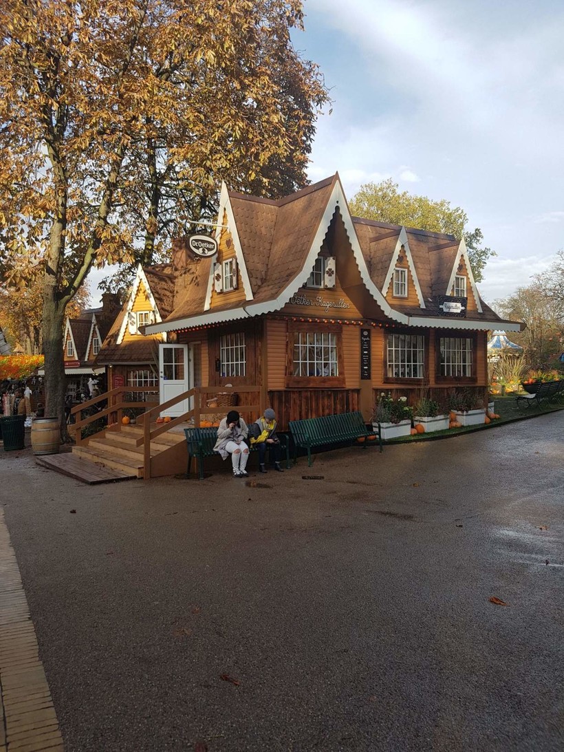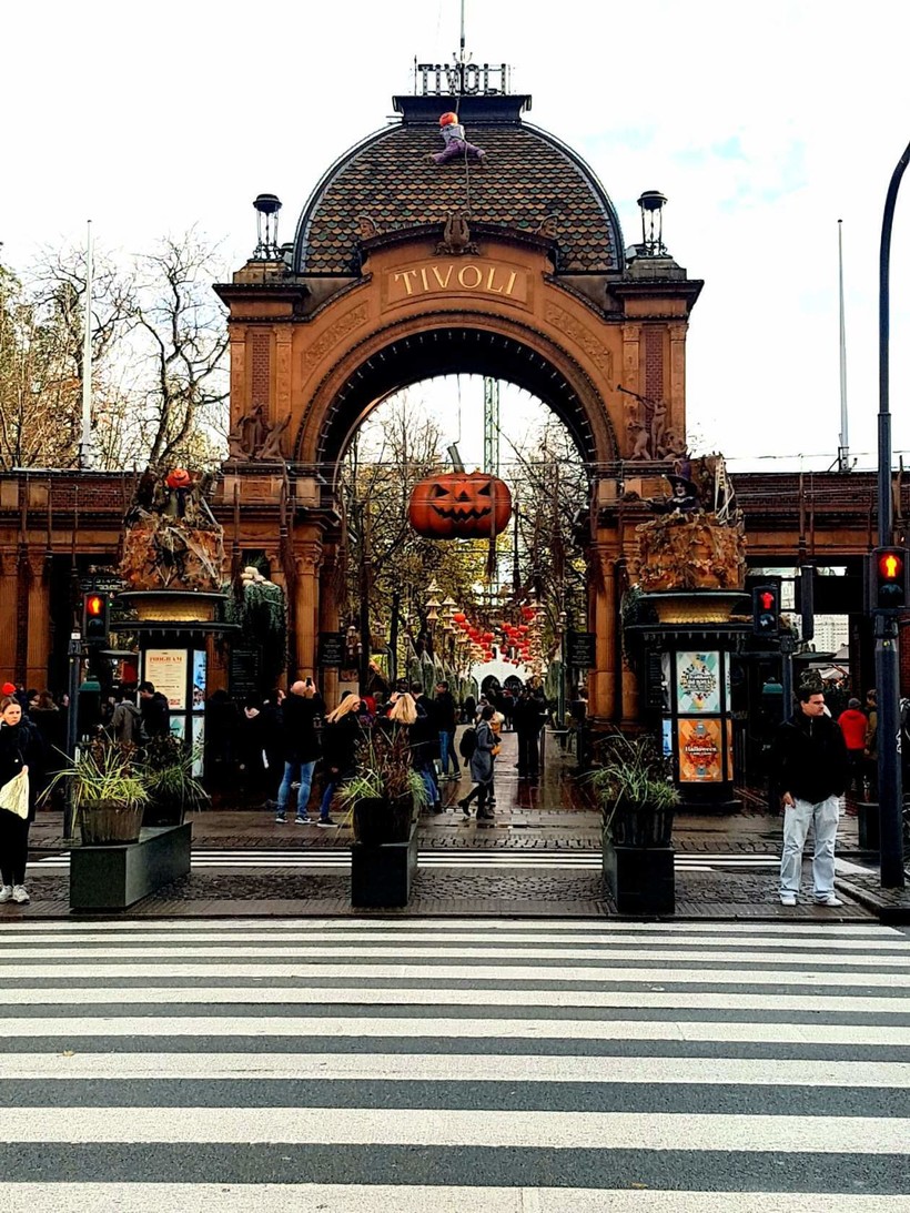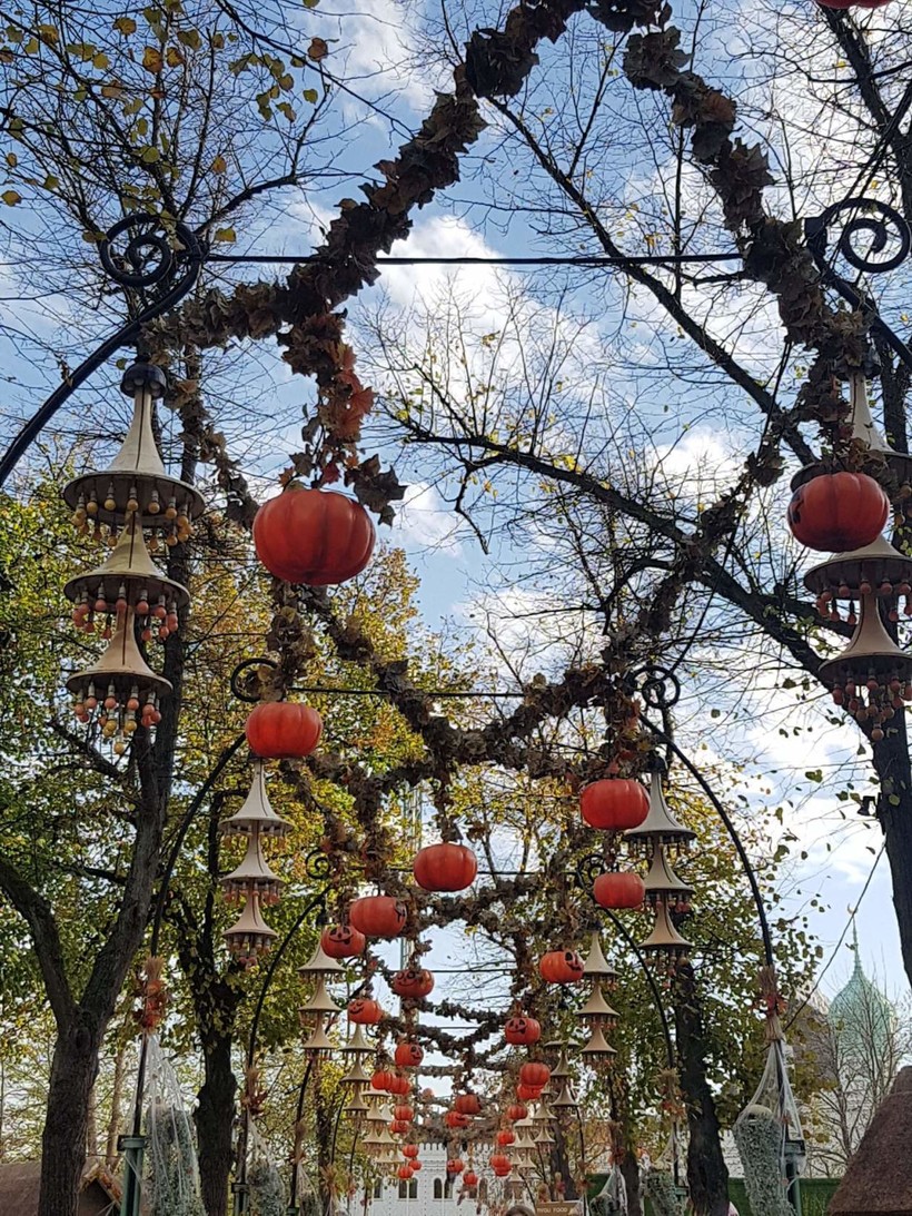 И напоследок - детская радость! Поскольку был канун Хэллоуина, без парка развлечений было никак нельзя и мы отправились в парк Тиволи. Из минусов - запутанные входы к аттракционам, ограничений по возрасту много, и рост замеряют ростомером на входе. Чего-чего, а этого мы еще ни в одном парке не видели. Но это того стоит! Вы только посмотрите, какой осенний рай здесь по случаю праздника!