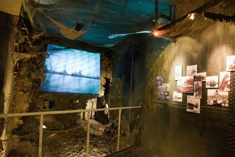 Вы попадаете как в затопленные трюмы корабля. Каждый зал посвящен какой-либо морской трагедии.