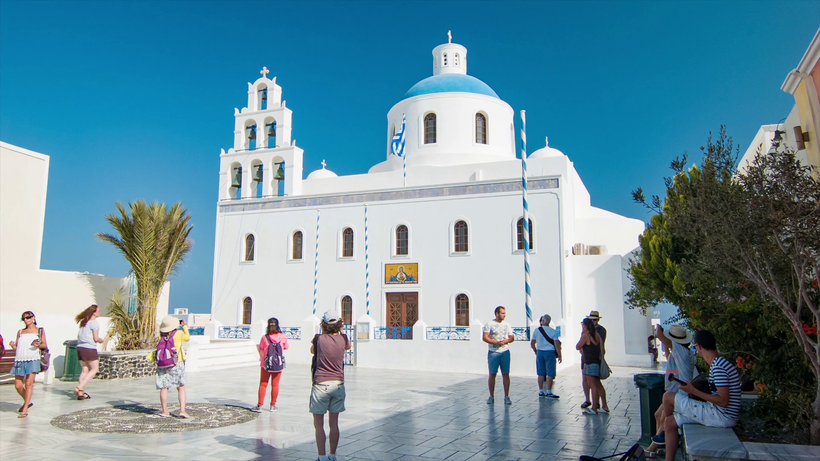 - Посетить архитектурный символ Санторини – скальную церковь Айиу-Мина (Церковь Св.Созонта), расположенную на площади в центральной части деревни. Ее невозможно обойти стороной, так как как бы вы не ходили, точно попадете сюда.