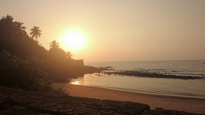 Добраться до Кандолима довольно просто: из своего отеля мы брали такси (чтобы уехать с пляжа, стоянка такси есть у главного выхода с пляжа), можно на автобусе, который идёт по шоссе, параллельному пляжу. Располагается Кандолим между Калангутом и Синкеримом (небольшой пляж, который прилегает к Агуада форту). Потому на закате можно подняться на форт и проводить день оттуда, виды потрясающие.