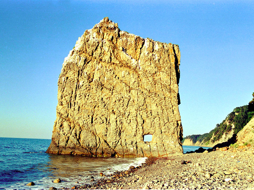 Из достопримечательностей есть только «Парус» — скала, до которой надо пробираться через крупные камни.