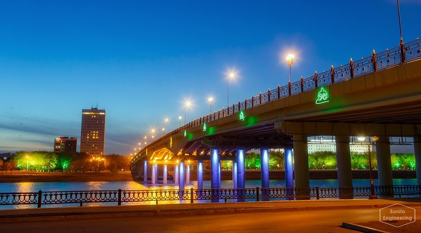 - Пешеходный мост - самый большой в мире, занесен в книгу рекордов Гиннеса. Он построен таким образом, что не мешает проходить под ним судам, а осетрам - идти на нерест. Называется он достаточно скучно "10 лет независимости", но гулять по нему совсем не скучно - открывается красивый вид на город.