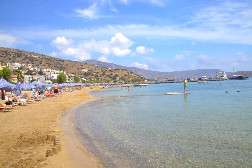 Удобство закрытой бухты с успехом компенсирует сильный ветер, часто дующий с гор. Поэтому даже при жарком солнце может сделаться прохладно. Во многих местах написано, что ветра нет, пляжи от него защищены – не верьте, ветер есть, и он постоянный! Мы об этом отдельно побеседовали с хозяином нашего мини-отеля. Он сам из Ханьи, но в Элунде держит апартаменты, потому что выгодно. Так вот, он уверяет, что ветра тут не бывает очень-очень редко, в основном он есть. Это прекрасно для яхтинга, а вот некоторые любители пляжного отдыха разочаровываются. Хотя в остальном к пляжам не придраться: вода здесь гораздо дольше остается теплой, чем во многих других бухтах Крита, и сезон длится до конца ноября.