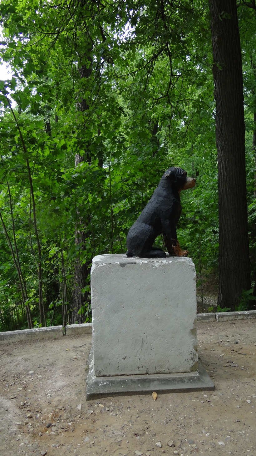 - Другие объекты. Тут стоит выделить необычную двухуровневую беседку, на верхнем ярусе которой установлена статуя Аполлона Бельведерского, небольшую беседку-полуротонду, а также памятник собаке Султану, которая, возможно, была первым ротвейлером на территории российской Империи и принадлежала одной из хозяек усадьбы, графине Паниной.