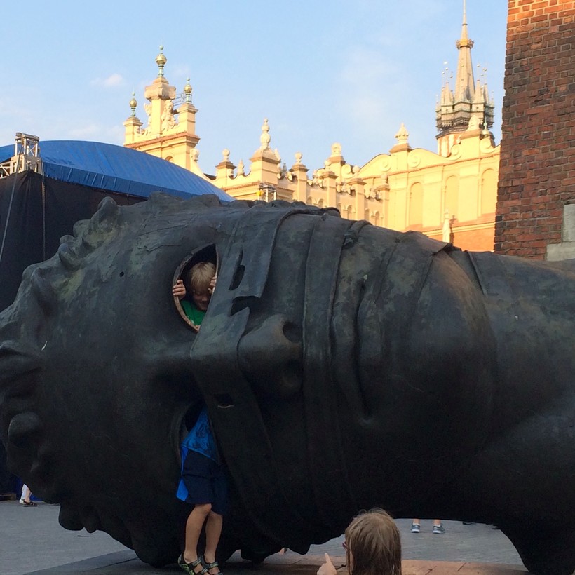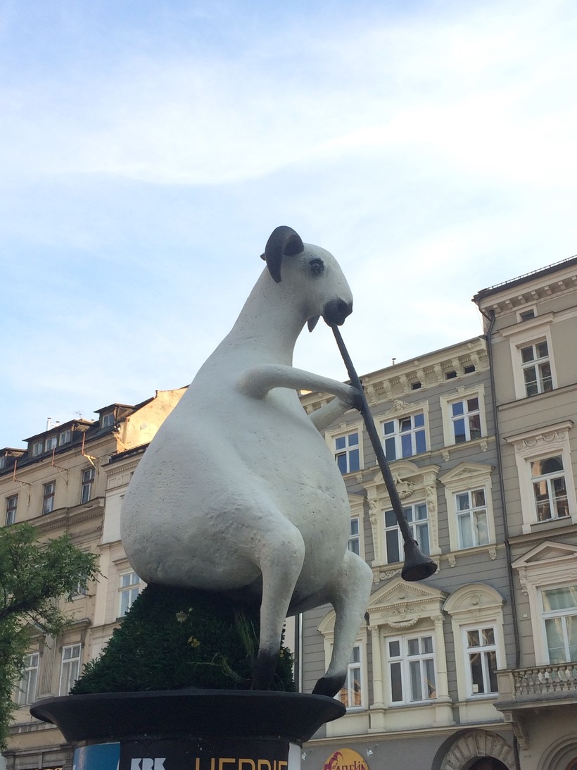 На рыночной площади много кафе и ресторанов, летом столики стоят прямо на площади. Еда очень вкусная, много национальных польских блюд. Наше внимание привлекли объекты современного искусства.