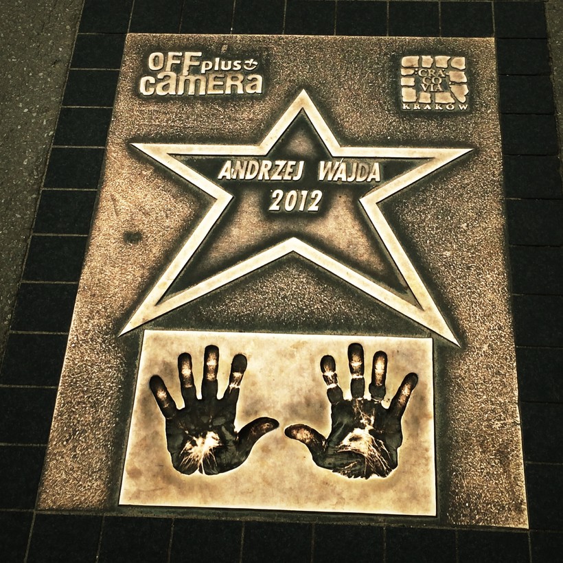 Внизу под крепостной стеной, на набережной Вислы существует дорожка Кинозвезд, ведь в Кракове проходит известный европейский кинофестиваль. Мы нашли звезду, недавно ушедшего польского режиссера Анджея Вайды.