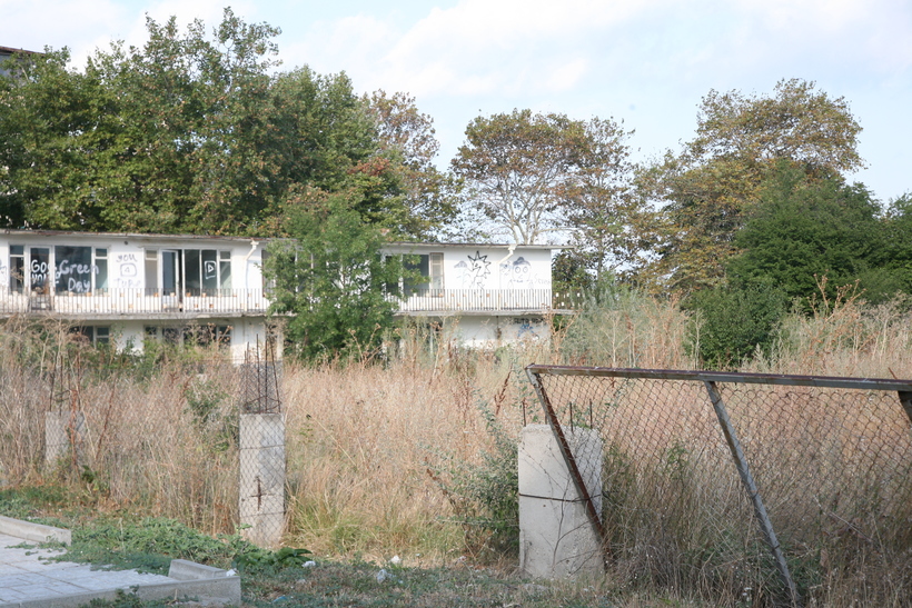 Вообще, недострои и заброшенные дома в Равде встречаются не так уж редко. Например, на центральном пятачке поселка тоже покосившийся забор, разруха и мусор у когда-то добротного кирпичного болгарского дома. Видно, что все новое активно погнало из поселка прошлый век, старинные деревенские дома, бывший уклад и в этом чувствуешь в Равде какой-то надлом.