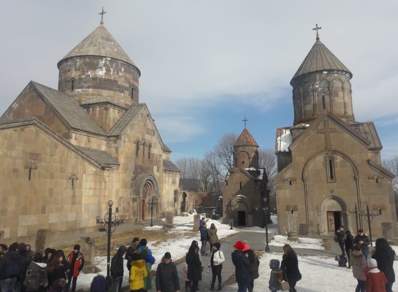 Для тех, кто впервые собирается посетить Цахкадзор, в первую очередь, я бы порекомендовала посетить Монастырский комплекс Кечарис. Он стоит в самом центре города и, словно магнит, притягивает всех гостей города своим величием. Монастырь был основан в начале XI века. В Монастырский комплекс входит так же Церковь Св. Арутюна, которая находится в некотором отдалении от главного входа. Туристические группы, в основном, обходят стороной Церковь Св. Арутюна, но зайти в него стоит обязательно. Он отличается своим спокойствием и небольшим количеством туристов.