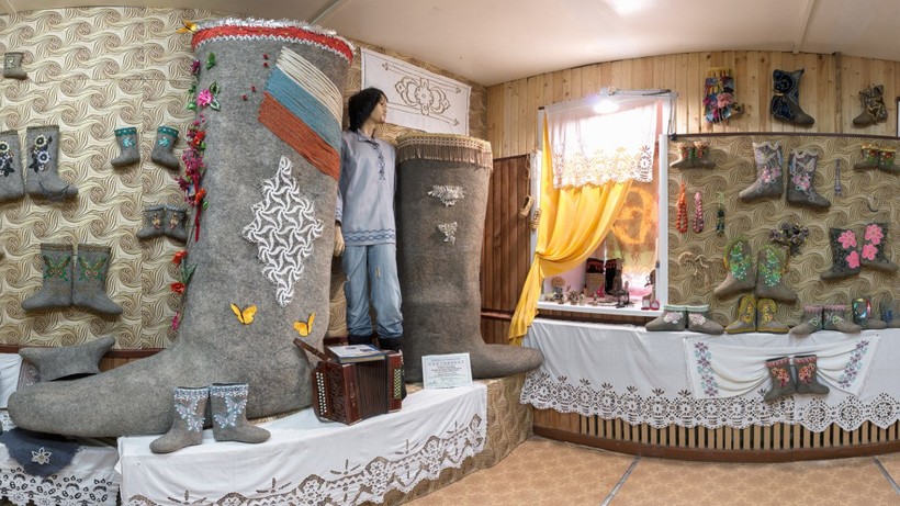 Посоветую ещё одно место, которое весьма необычно. Это – музей «Русские валенки». Его главный царь-экспонат - гигантский валенок 201-го размера! Его высота 225 см, вес 52 кг.