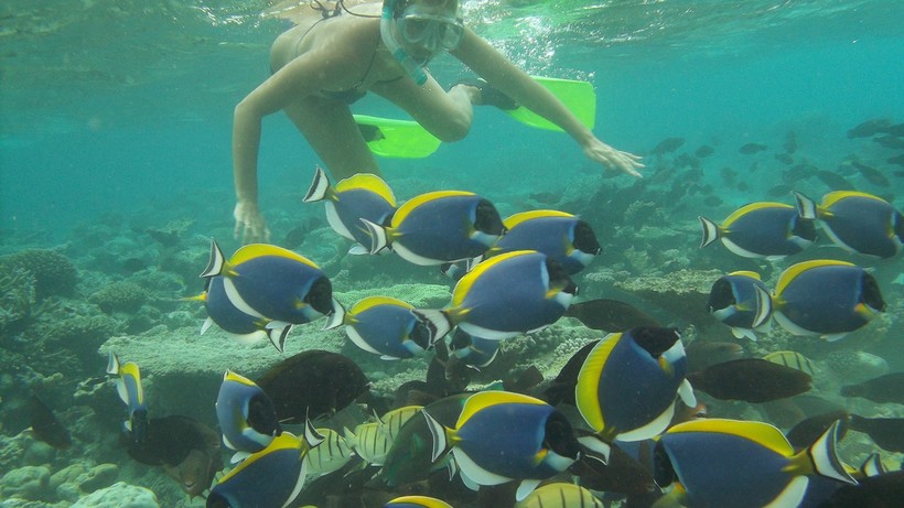 - «Остров черепах». Непременно посетите этот остров, если вам предложат эту экскурсию. Хотя это скорее подводный остров, и даже не остров, а целый мир, который останется в памяти на всю жизнь. Итак, на моторной лодке мы пересекали океан минут 30, после чего нас высадили в открытом океане с ластами и масками и сказали: нырять! Страшно…а вдруг акулы. Но все обошлось. Русский экскурсовод Рома нас заверил, что в прибрежных водах Индийского океана водятся только безобидные рифовые акулы. И вот мы уже погружаемся в бездну. И перед нами открывается целый мир, такой красочный и необычный, что перехватывает дыхание. Конечно, я с удовольствием поплавала бы с аквалангом, чтобы бесконечно не выныривать за глотком воздуха, но мы ограничились маской с трубкой.