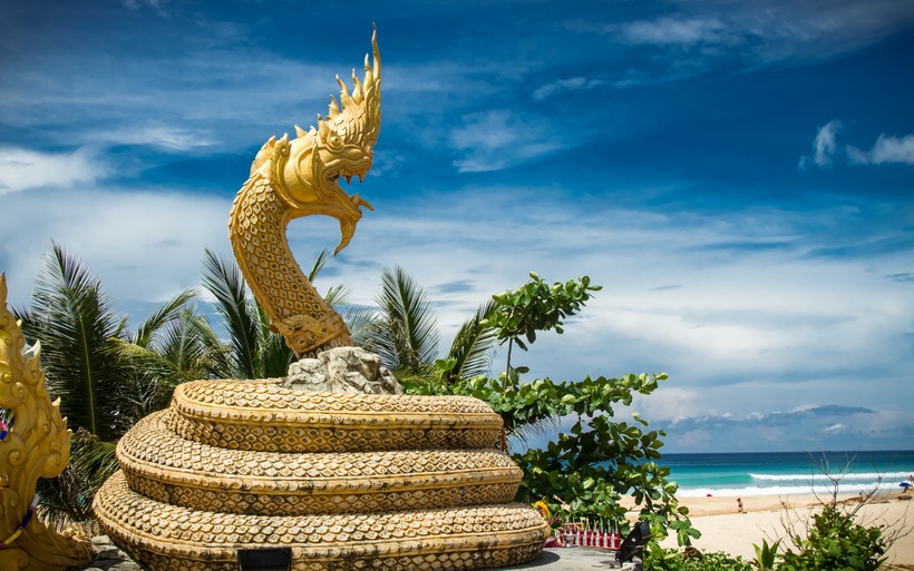 Помимо этого, внимание на Кароне привлекает большая фигура дракона или змея, к которой местные жители приносят подношения. Гигантский золоченый змей, свернувшийся кольцами — добавляет колорита! Мы жили прям рядом с ним, так что у меня он вызывает особенно нежные чувства.