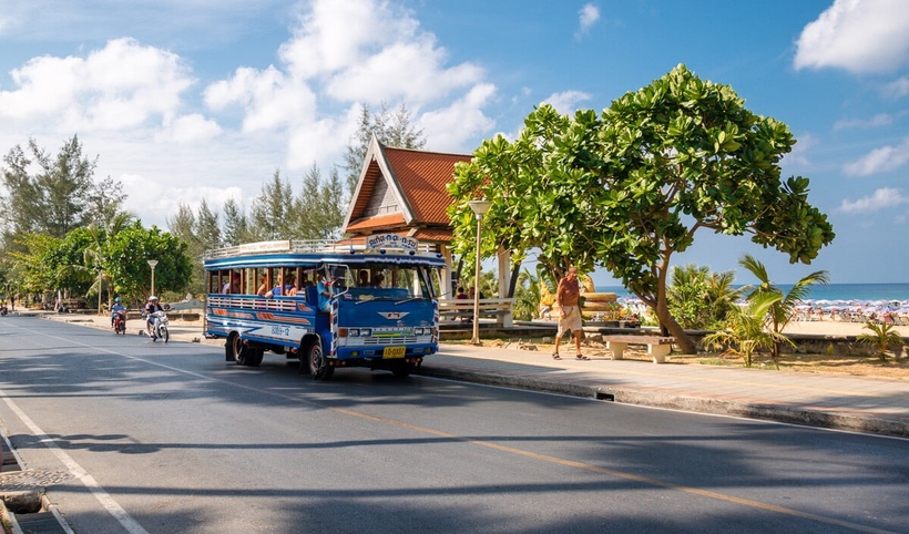 Карон-Бич очень удобно расположен относительно других мест на Пхукете. Например, до столицы острова Пхукет-Таун можно добраться примерно за час, аэропорт находится в 1,5-2 часах езды, а знаменитое место для веселья — Патонг — и вовсе соседний пляж. Нас не особо привлекают ночные развлечения, поэтому мы не ездили на Патонг, но многие туристы берут тук-тук и доезжают до туда минут за 10. Кстати, прямо через всю территорию Карона проезжают сонгтэо — это местные открытые автобусы синего цвета, маршруты которых проложены по всему острову: хороший вариант сэкономить для тех, кто не хочет ездить на такси или тук-туках. А в столице — Пхукет-Тауне — сонгтэо розовые.