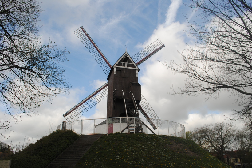 На велосипеде я доехала до мельниц, которые надеялась увидеть только в Нидерландах. В Голландии их видела, но не так близко, как в Брюгге.