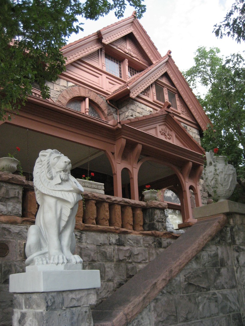 Дом Молли выделяется на фоне остальных львами. Нет, кончено, не настоящими, а каменными. Перед главным входом, сопровождая лестницу, расселось и разлеглось целое львиное семейство. Внешний вид дома - это настоящий архитектурный экстаз: крыльцо украшенное резными узорами, милый балкон, на котором по утрам можно пить кофе и читать книги и все это сопровождается грубо отёсанными вулканическими кирпичами. Я б тут жила!