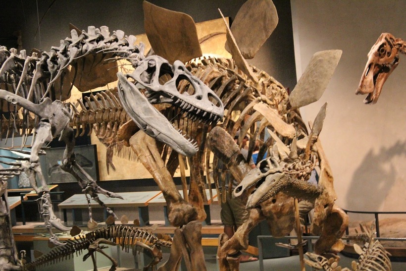 Ну и в один музей мы все таки решили зайти - Денверский музей науки и природы, так как меня заинтересовало описание воссозданной археологической зоны внутри него. Прям посреди музейного здания расположились настоящие скелеты динозавров и их макеты. Несмотря на то, что на динозавров я в свое время вдоволь насмотрелась в Нью-Йорке, здесь тоже было чем поживиться, например, настоящей коллекцией различных окаменелостей.