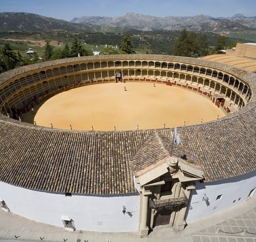 Ронда - родина тореадоров, в «Фиесте» Хемингуэя симпатичный молодой матадор как раз был оттуда. Маленький, пустоватый город, состоящий из белых домиков, привлекает туристов прежде всего ареной для боя быков, построенной в 1794 году. На сами бои мы, конечно, не попали, зато застали вечный бронзовый памятник быка. Обязательно потрите его, на счастье. Арена представляет собой музейный комплекс и круглое поле с сиденьями вокруг. Вход туда обойдётся в 10 евро. Внутри можно побродить по арене, представить, как здесь проходили бои быков, зайти в музей корриды и во все хозяйственные помещения, даже в конюшню. Интересно и атмосферно, кажется, будто прямо сейчас на тебя выбежит разъяренный бык.