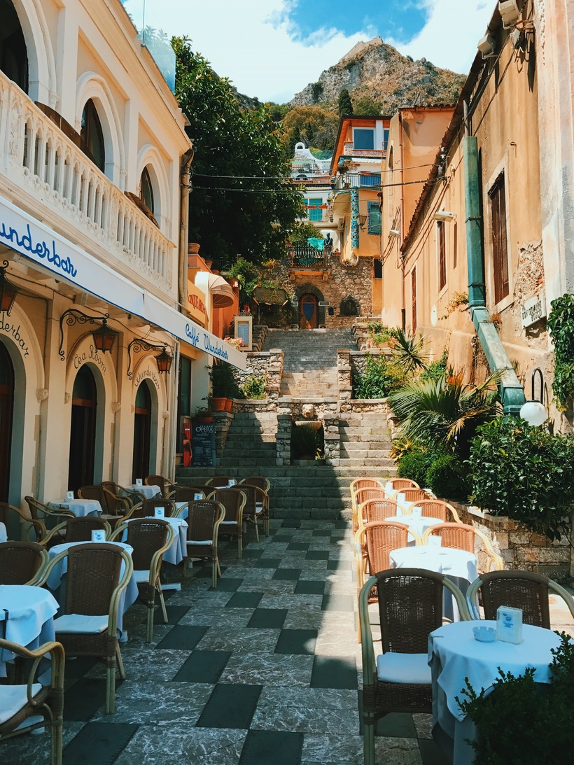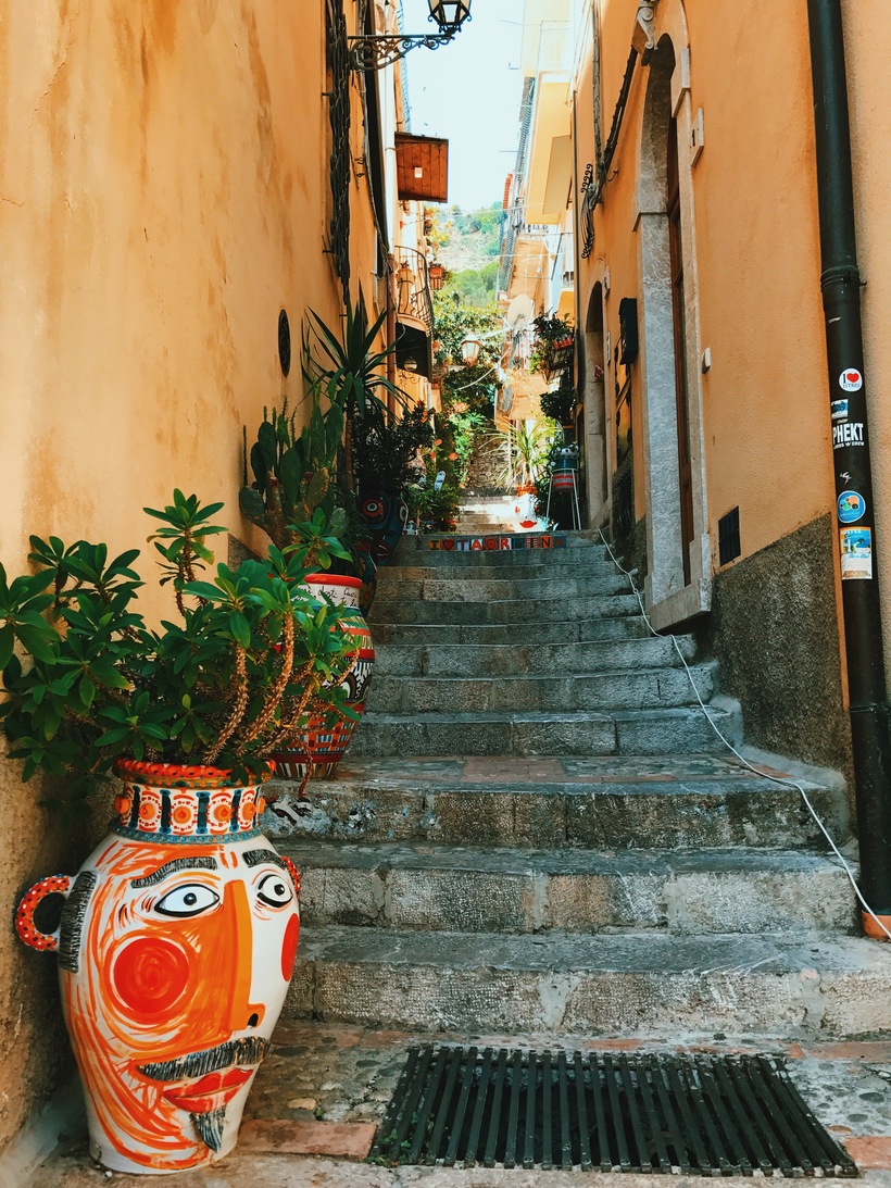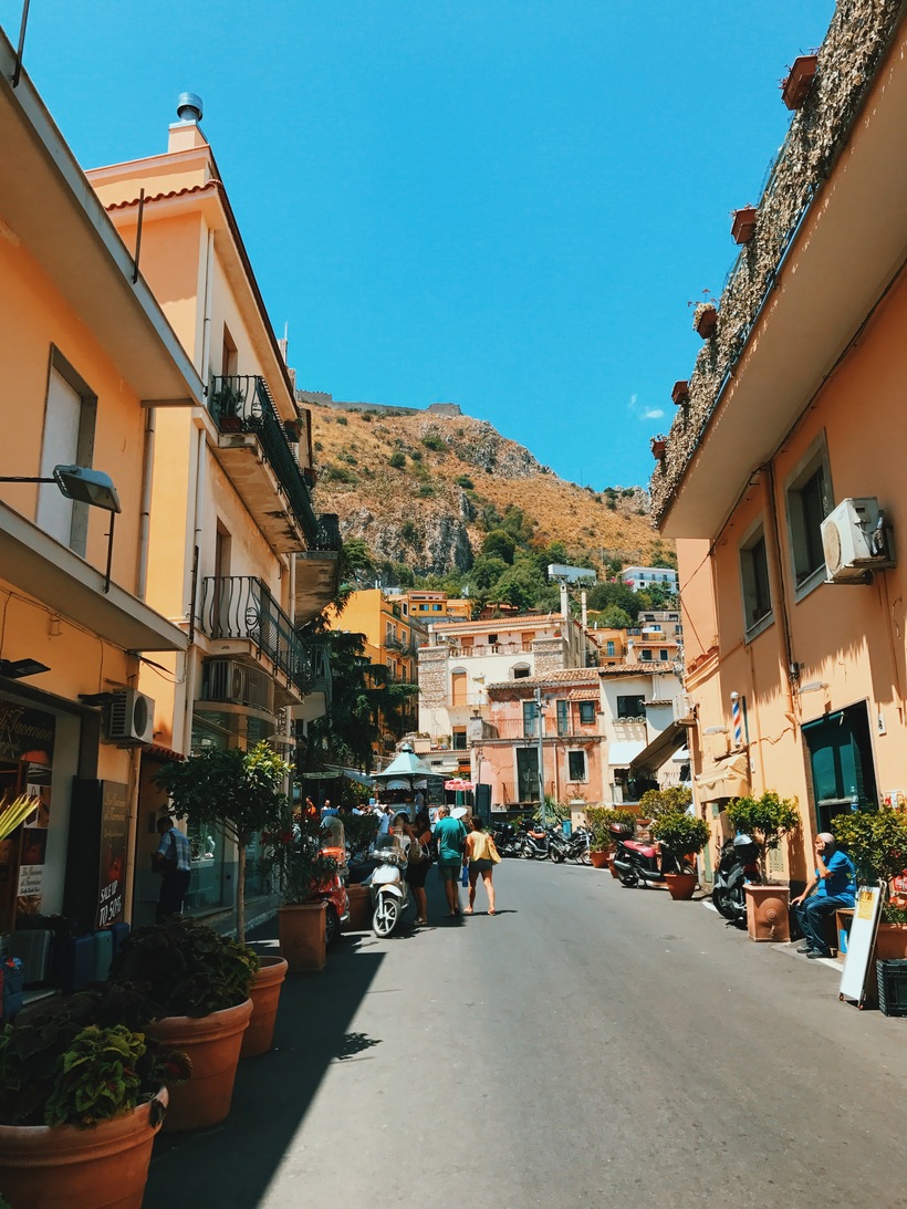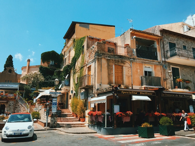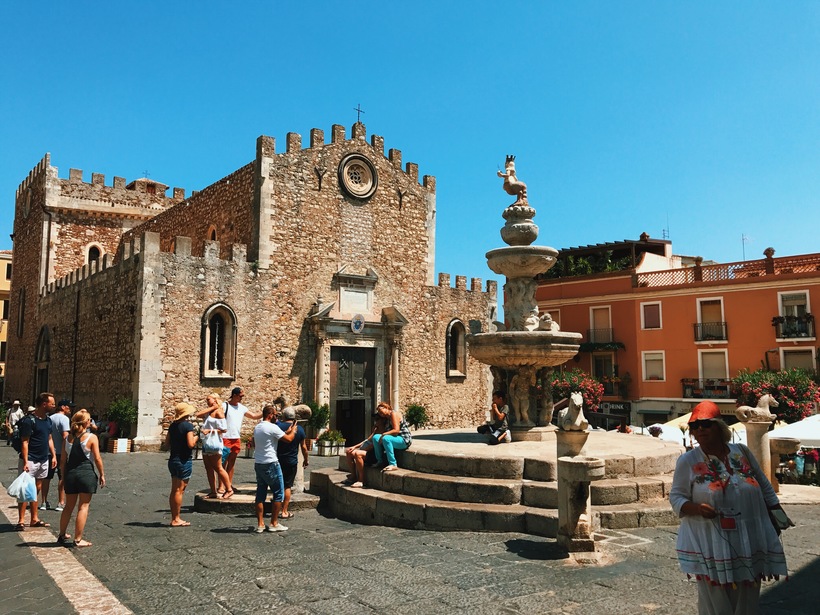 Мы с мужем были в круизе и наш лайнер прибыл на Сицилию в порт города Мессина, но нам было интереснее посмотреть другой городишко, куда мы сразу же и отправились на поезде. На железнодорожной станции приобрели билеты, стоимость туда - обратно составляет ~ 16€ на двоих, в пути около часа. Большим плюсом является то, что билет без конкретного времени и действителен в течение всего дня. Железная дорога проходит вдоль берега моря и из окна поезда открываются чудесные виды. Таормина потрясающий городок, очень уютный и ооочень красивый, а какое там вино, ммм. Мы были там в середине июля и было невыносимо жарко, поэтому обязательно берите с собой головной убор. На улице для удобства местных и, конечно же, туристов, установлено много питьевых фонтанчиках, в которых так же можно умыться. Таормина находится на некоторой высоте над уровнем моря, поэтому вам переодически придётся подниматься в горку и спускаться с неё. Но есть там ещё одно интересное развлечение. Это фуникулер с центра города прямо на пляж. Дорога займет у вас примерно минут 10, по стоимости это будет немного дороже (3€), чем если вы поедете на автобусе + пройдетесь пешком. Такой вид транспорта однозначно стоит того, так как таких видов вы не сможете узреть ни с одной смотровой площадки. Прогуливаясь по улочкам, не торопитесь заходить обедать в первые попавшиеся заведения, сверните в глубь и увидите настоящие сицилийские таверны, где вас обслужит целая семья. Обязательно попробуйте местные брускеты и пасту с морепродуктами, ну и, конечно же, сладкие трубочки каноллони, которые так любил Дон Корлеоне из фильма «Крестный отец».