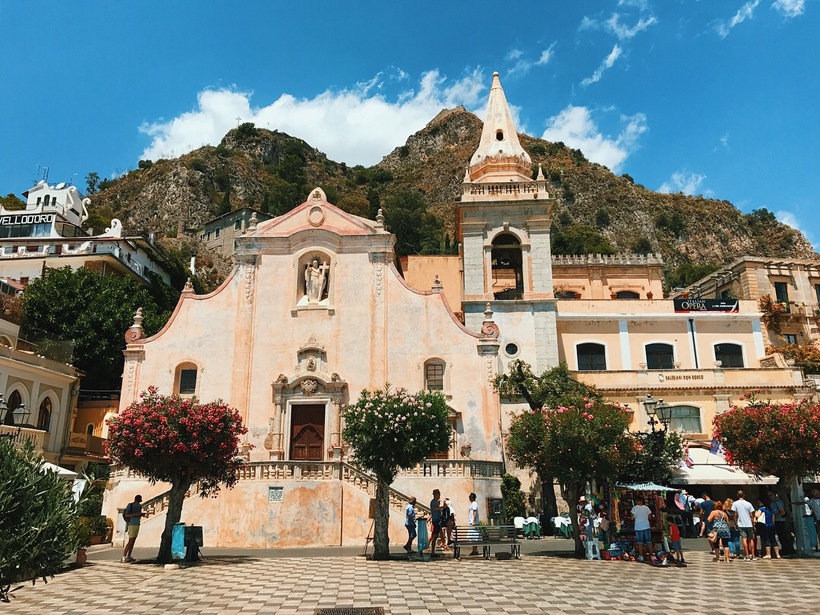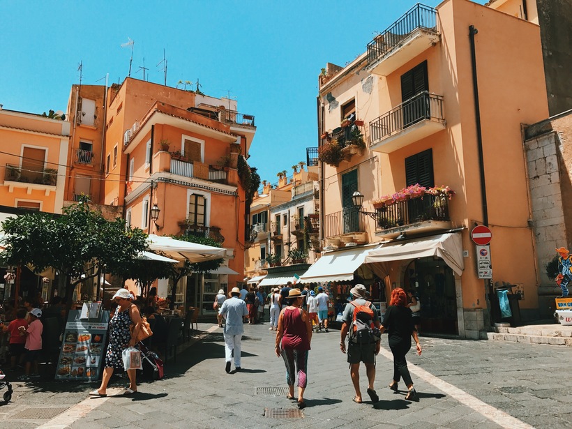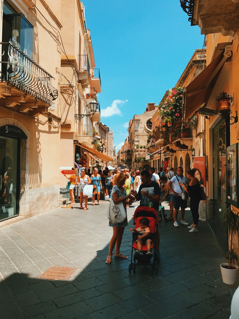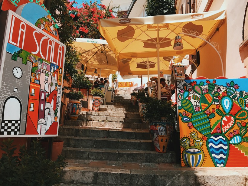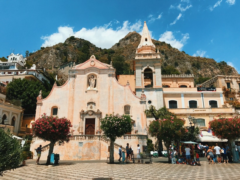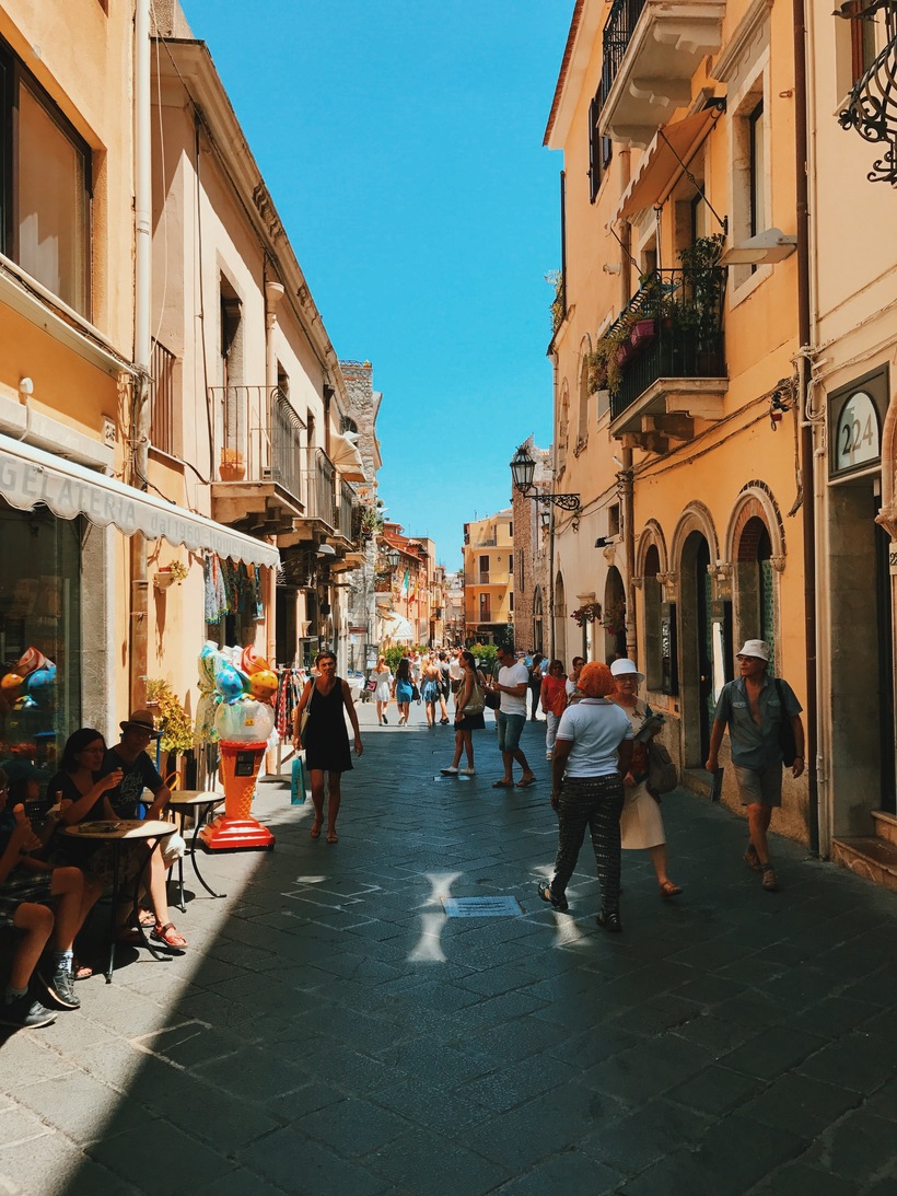 Мы с мужем были в круизе и наш лайнер прибыл на Сицилию в порт города Мессина, но нам было интереснее посмотреть другой городишко, куда мы сразу же и отправились на поезде. На железнодорожной станции приобрели билеты, стоимость туда - обратно составляет ~ 16€ на двоих, в пути около часа. Большим плюсом является то, что билет без конкретного времени и действителен в течение всего дня. Железная дорога проходит вдоль берега моря и из окна поезда открываются чудесные виды. Таормина потрясающий городок, очень уютный и ооочень красивый, а какое там вино, ммм. Мы были там в середине июля и было невыносимо жарко, поэтому обязательно берите с собой головной убор. На улице для удобства местных и, конечно же, туристов, установлено много питьевых фонтанчиках, в которых так же можно умыться. Таормина находится на некоторой высоте над уровнем моря, поэтому вам переодически придётся подниматься в горку и спускаться с неё. Но есть там ещё одно интересное развлечение. Это фуникулер с центра города прямо на пляж. Дорога займет у вас примерно минут 10, по стоимости это будет немного дороже (3€), чем если вы поедете на автобусе + пройдетесь пешком. Такой вид транспорта однозначно стоит того, так как таких видов вы не сможете узреть ни с одной смотровой площадки. Прогуливаясь по улочкам, не торопитесь заходить обедать в первые попавшиеся заведения, сверните в глубь и увидите настоящие сицилийские таверны, где вас обслужит целая семья. Обязательно попробуйте местные брускеты и пасту с морепродуктами, ну и, конечно же, сладкие трубочки каноллони, которые так любил Дон Корлеоне из фильма «Крестный отец».